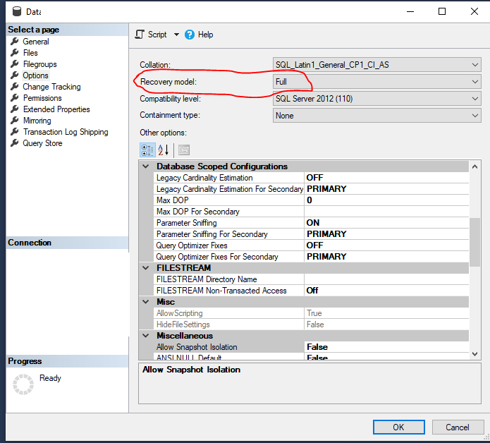Tóm lại: Recovery model = Full để phục vụ nhu cầu Rollback dữ liệu (SQL) về bất kỳ thời điểm nào khi cần, tuy nhiên thực tế hiếm khi dùng đến recovery này. Kết quả là: file log của database phồng lên rất lớn, đặc biệt là các database có lượng dữ liệu lớn và truy vấn nhiều.