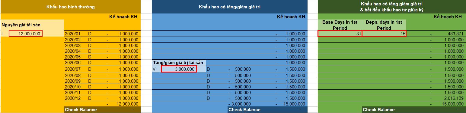 - Khấu hao bắt đầu từ giữa kỳ.
