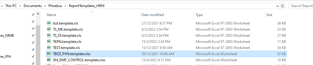 B1. Mở file TBQT_PVN.template tại thư mục Documents\Phoebus\ReportTemplates_HRM