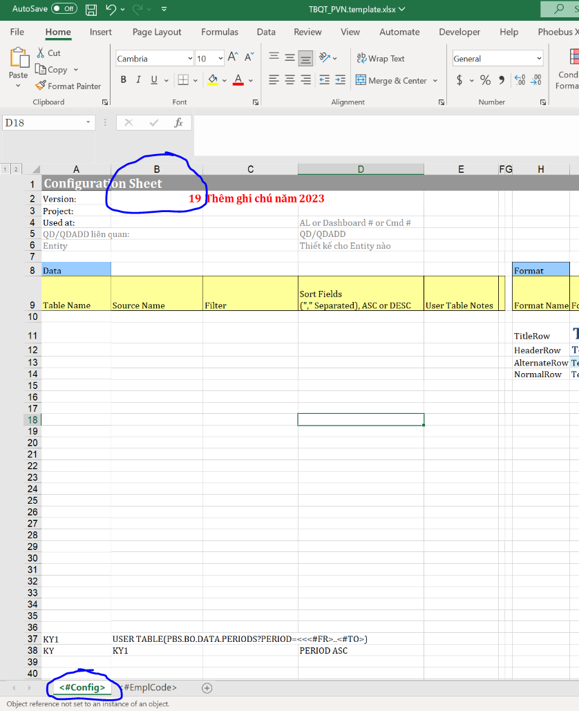B3. Tăng số version lên 1 số sau mỗi lần thay đổi tại ô B2 sheet <#Config> => Lưu và đóng file.