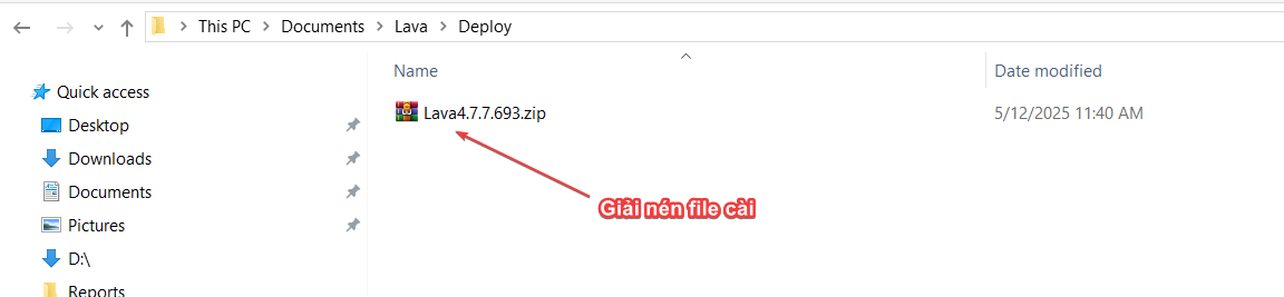 Bước 5: Copy file cài mới tải về vào thư mục Deploy > giải nén file zip > chạy file Lava.application để thực hiện quy trình cài đặt.